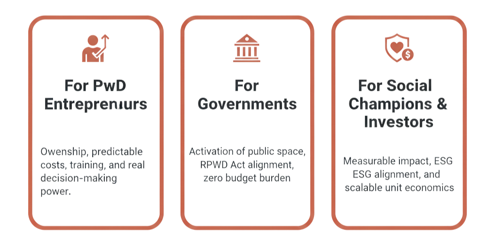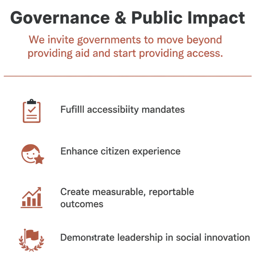 Terra Cart aligns public policy, disability rights, and economic inclusion into one scalable model. By converting access into ownership, we help governments deliver compliance, visibility, and measurable impact—without additional public expenditure.